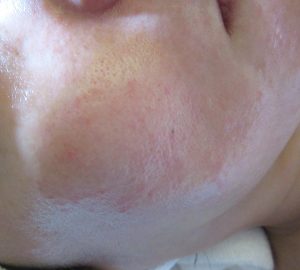 お肌を分析すると、両頬に毛細血管拡張してお肌全体が非常に乾燥していました。