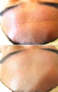 1回の施術後は、額のシワがふっくらとなめらかに、頬の赤みも落ち着き、ハリとツヤ感のある柔らかな肌へと変化しました。