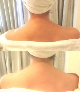 施術前は肩の高さに左右差がありましたが、施術後はバランスが整い、姿勢も改善されています。