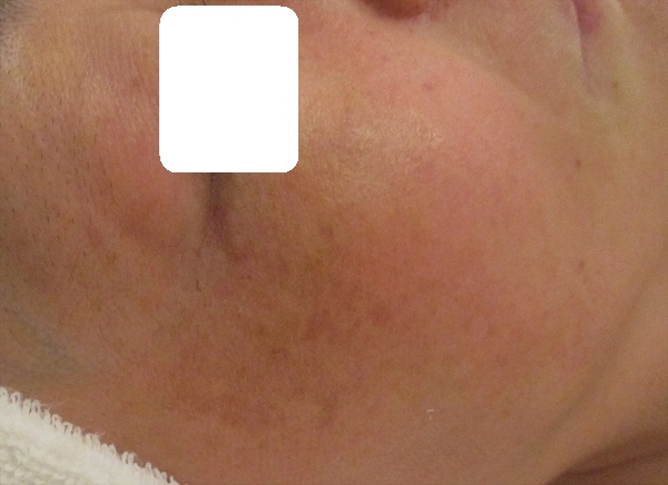 3回目で濃くなってしまったシミ部分を、シミ専用機器の2つの作用で施術して参りました。